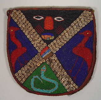 Mediumwood, pigment, cowrie shells, animal skull, cotton, hair, glass beads, cotton, copper alloy, shell, and seed pods